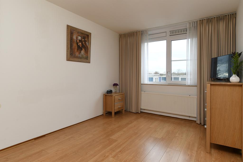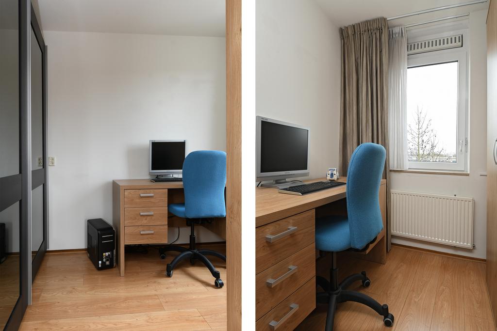 Het appartement heeft twee slaapkamers waarvan de kleinere kamer vanuit de woonkamer te bereiken is.
