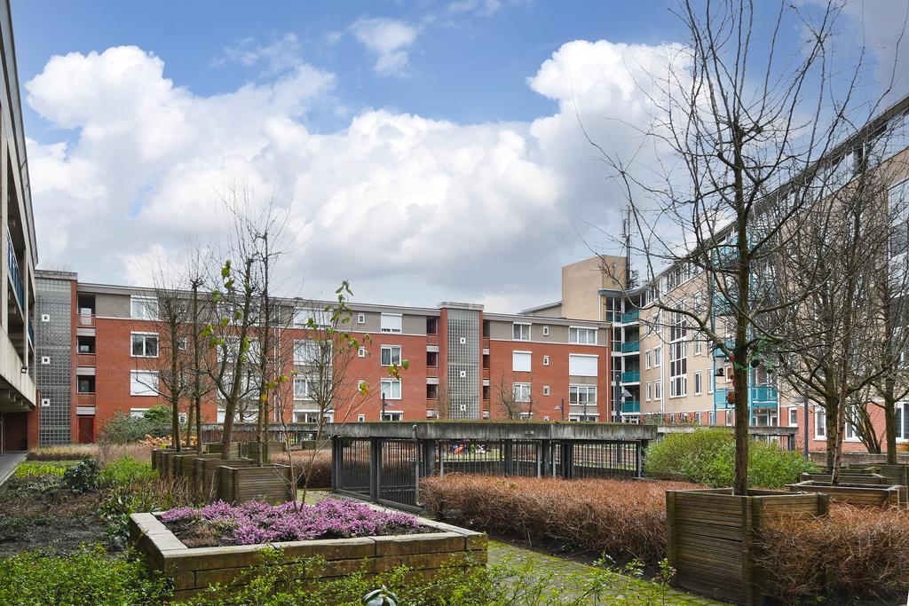 Het bijzondere aan dit appartementencomplex dat samen met andere complexen aan de Louis Regoutstraat en Twijnderstraat een driehoek vormt is de ruime en goed aangelegde gezamenlijke binnentuin. Deze binnentuin is aangelegd met paden, een plein, mooie borders, een picknick-tafel en speeltoestellen en zandbak.