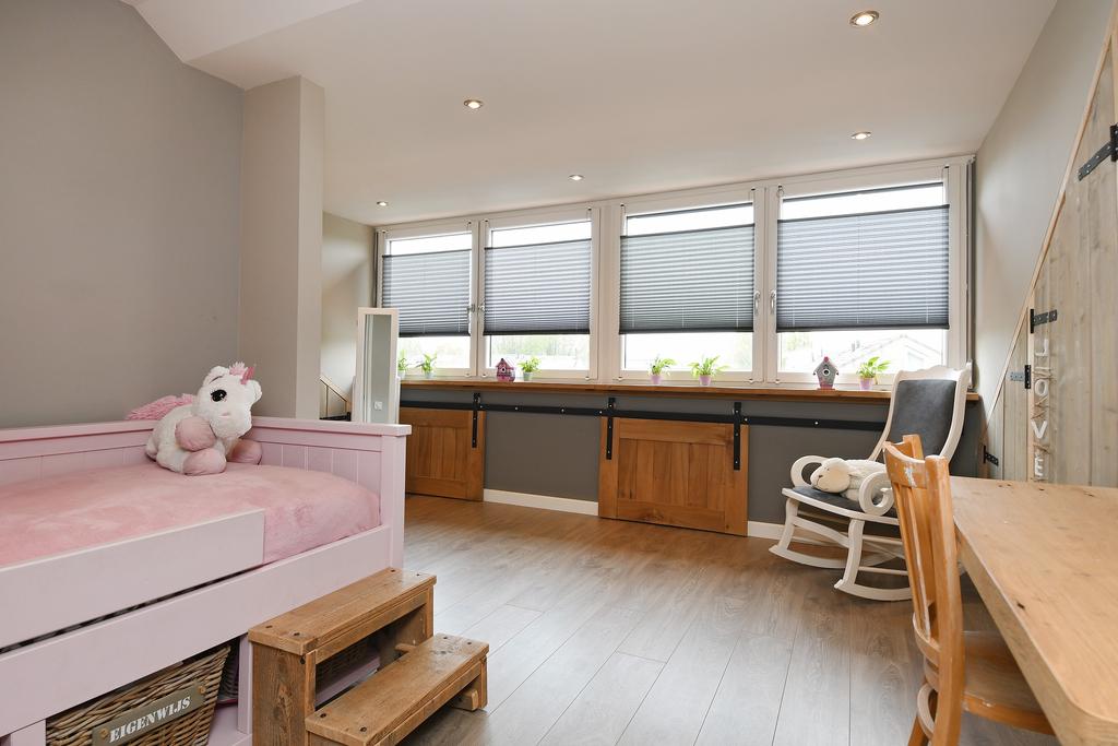 Op deze verdieping heb je dan ook veel bergruimte, een voorzolder met inbouwkasten en een hele mooie vierde slaapkamer, waar ook de inbouwkasten niet ontbreken!