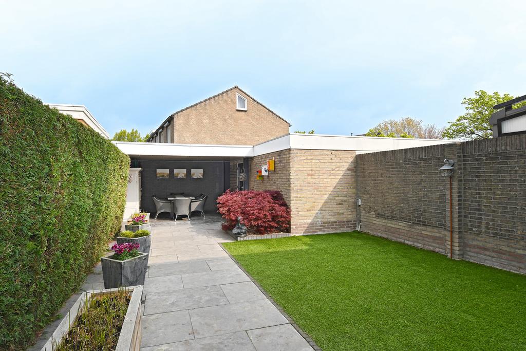 De achtertuin is modern en goed aangelegd met terras aan de woning, gazon en een overdekt terras achter in de tuin. Hier kan je heerlijk beschut zitten, lekker eten aan tafel of juist even de schaduw opzoeken.