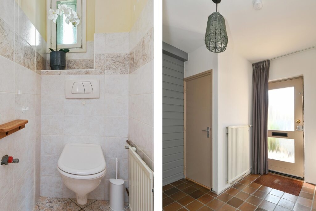Entree naar de verrassende ruime hal. In de hal is de meterkast met moderne groepenkast. De toiletruimte is goed ingericht met vrijhangend closet.