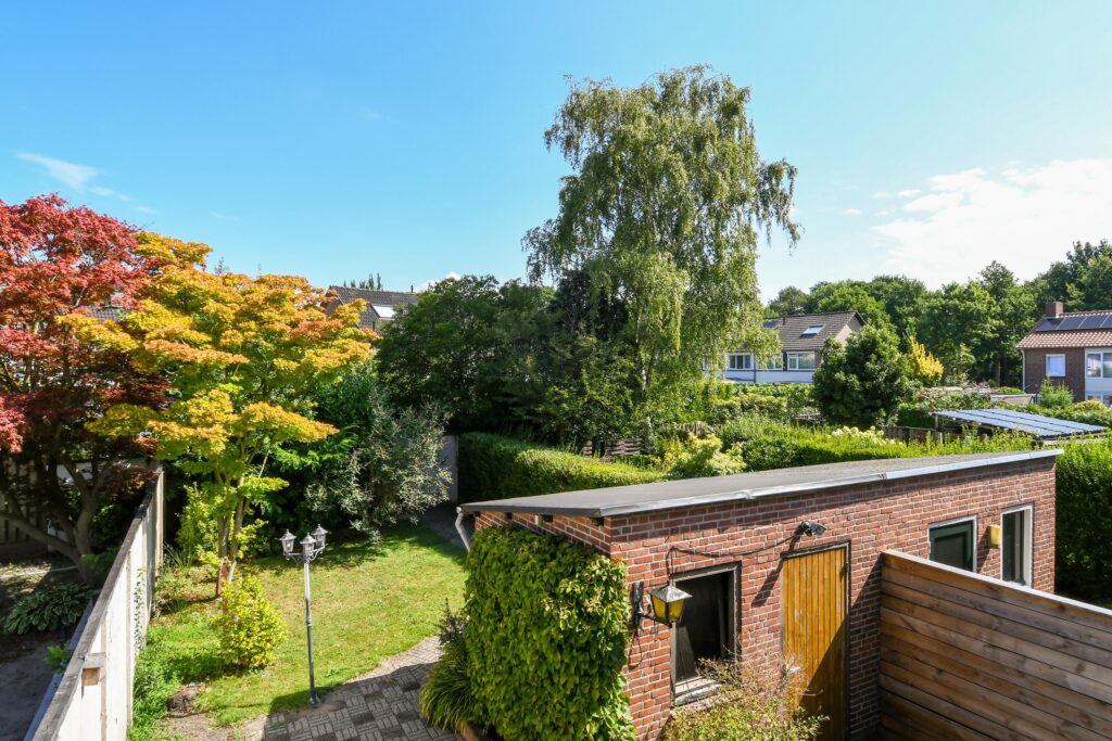 De achtertuin zal je verrassen omdat deze meer diepte en ruimte heeft dan je wellicht verwacht. De tuin is ingericht met terras aan de woning, een looppad naar de achterom, borders en een gazon. Een ideale plek voor spelende kinderen, tuinliefhebbers of om lekker te ontspannen in de zon!