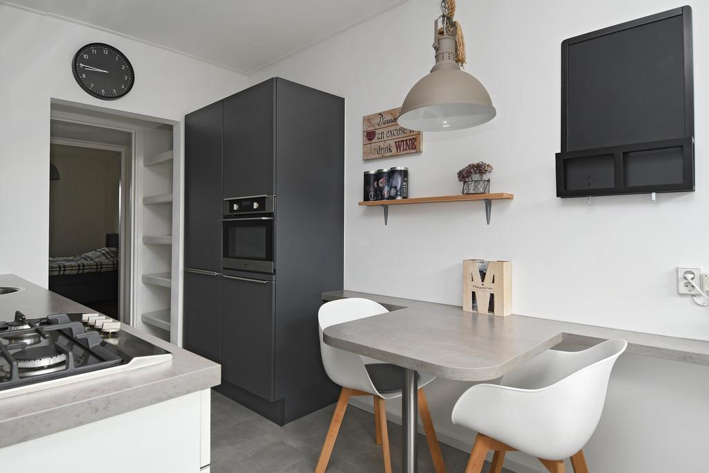 De keuken is geheel vernieuwd en modern ingericht met gaskookplaat, afzuigkap, koelkast, diepvries, afwasmachine en combi-oven/magnetron. Ook is er genoeg plaats om een gezellige ontbijttafel te plaatsen.