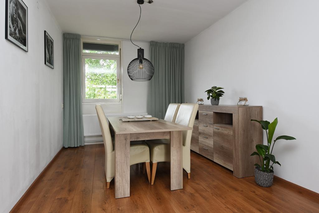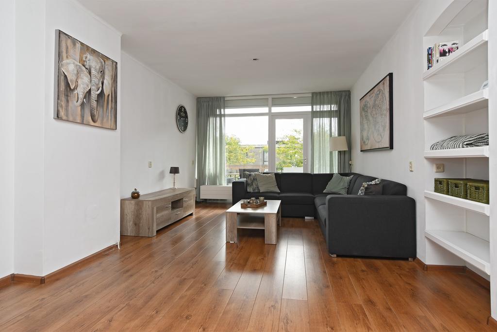 De woonkamer is lekker ruim en heeft veel daglichttoetreding. Aan de voorzijde heb je openslaande deuren naar het balkon waar je lekker vrij en rustig uitzicht hebt.