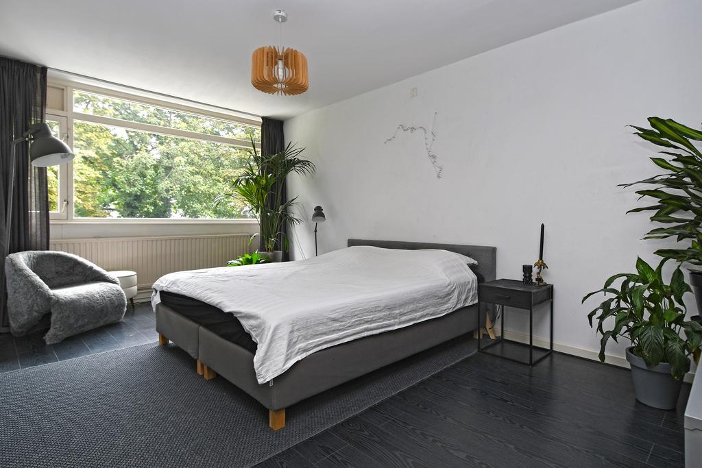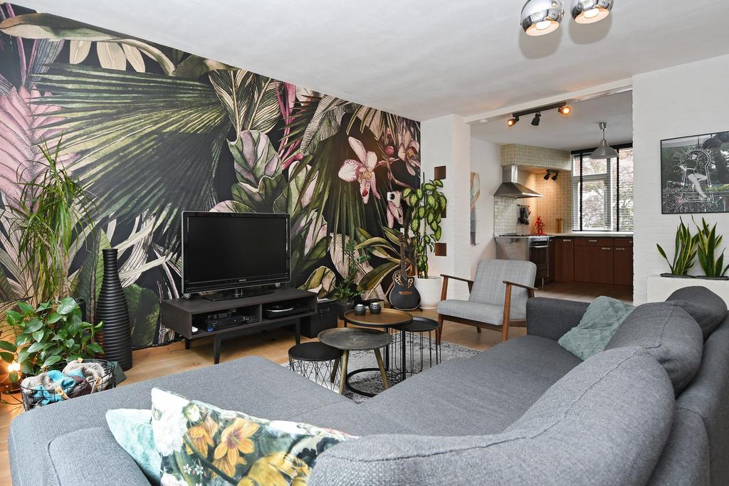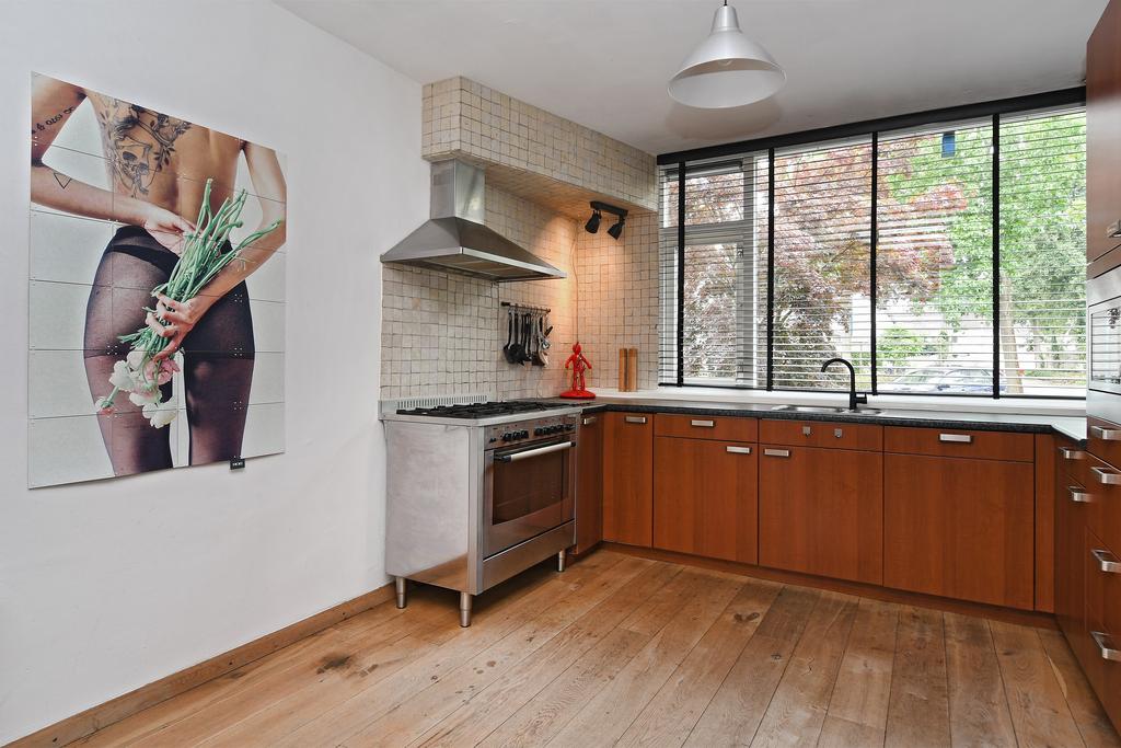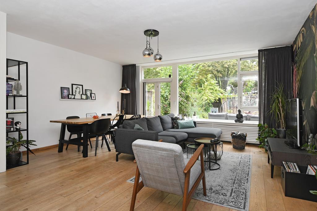 Bij binnenkomst van de woonkamer wordt je meteen verrast door de ruimte en het heerlijke uitzicht over de diepe en mooi ingerichte tuin. Aan de tuinzijde is over de gehele breedte een glazen pui met openslaande tuindeuren een groot raam. Je merkt meteen hoe fijn het is om aan de achterzijde van je huis te kunnen wonen!