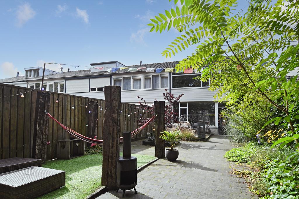 De tuin zelf is onderhoudsarm aangelegd met bestrating, een vlonderterras, enkele afgebakende borders en een lounge-gedeelte met eikenhouten palen, ideaal voor jouw hangmat! Zie jij je al genieten?