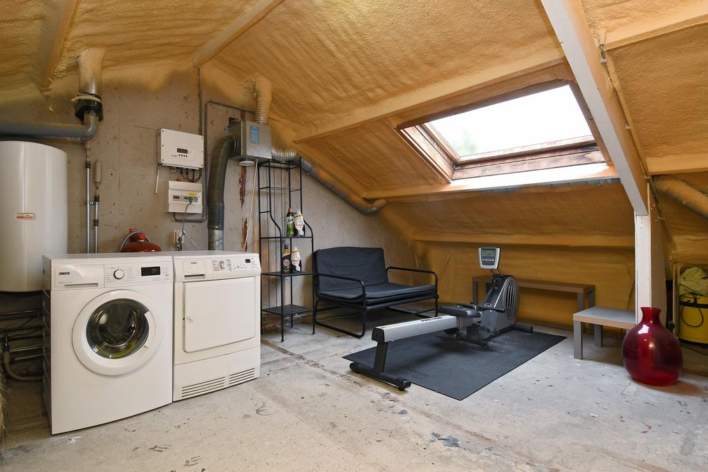 De zolder wordt nu gebruikt als bergzolder en ook de witgoedaansluitingen zijn hier aangebracht.