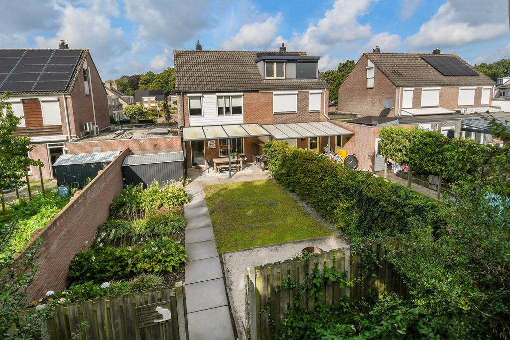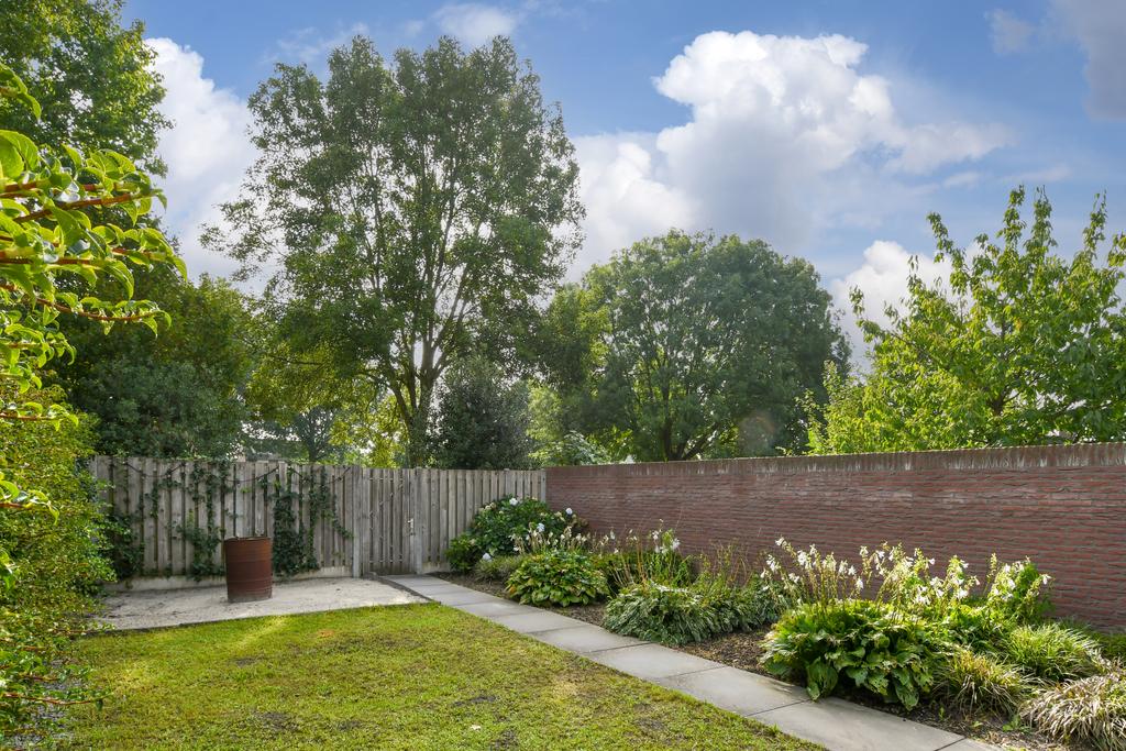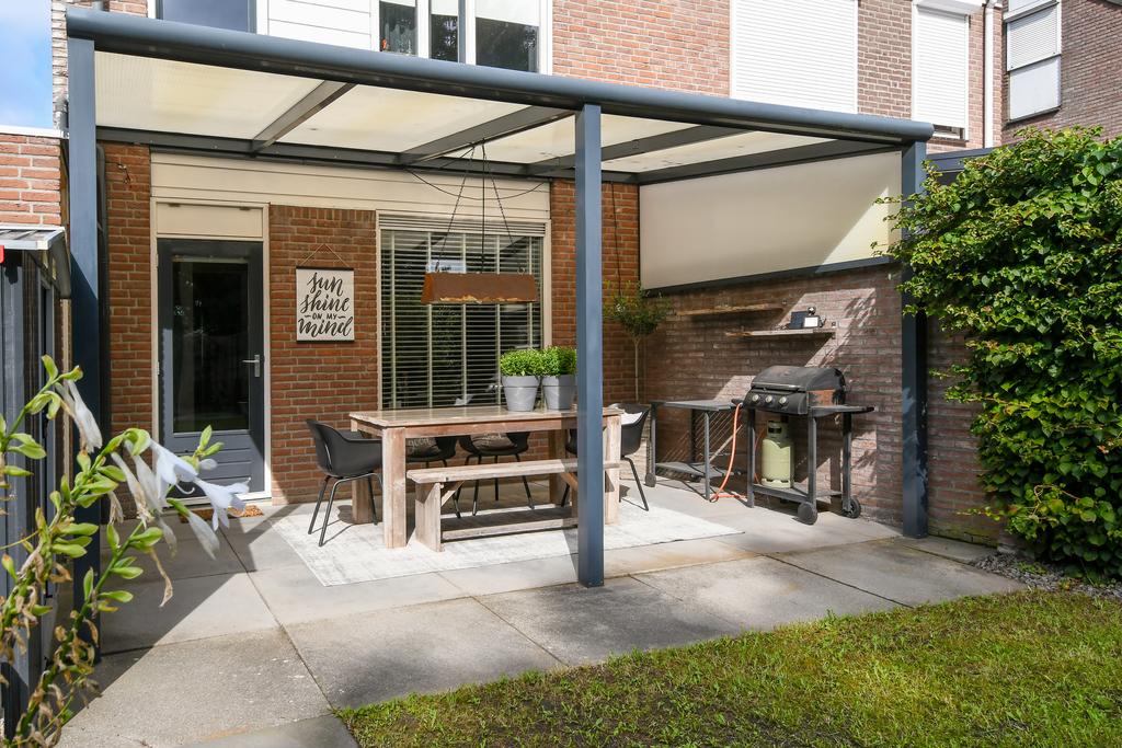 De achtertuin heeft een mooie afmeting en diepte genoeg om in te richten zoals je wilt! Er is een terras aan de woning met een overkapping waar je de hele dag heerlijk kan genieten van het vrije uitzicht en het groen van het achtergelegen park.