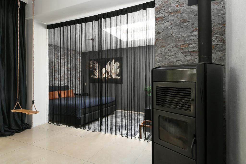 Er is een aparte ruimte gemaakt waar de witgoedaansluitingen zijn aangebracht en de Nefit combiketel (2002) is geplaatst.
