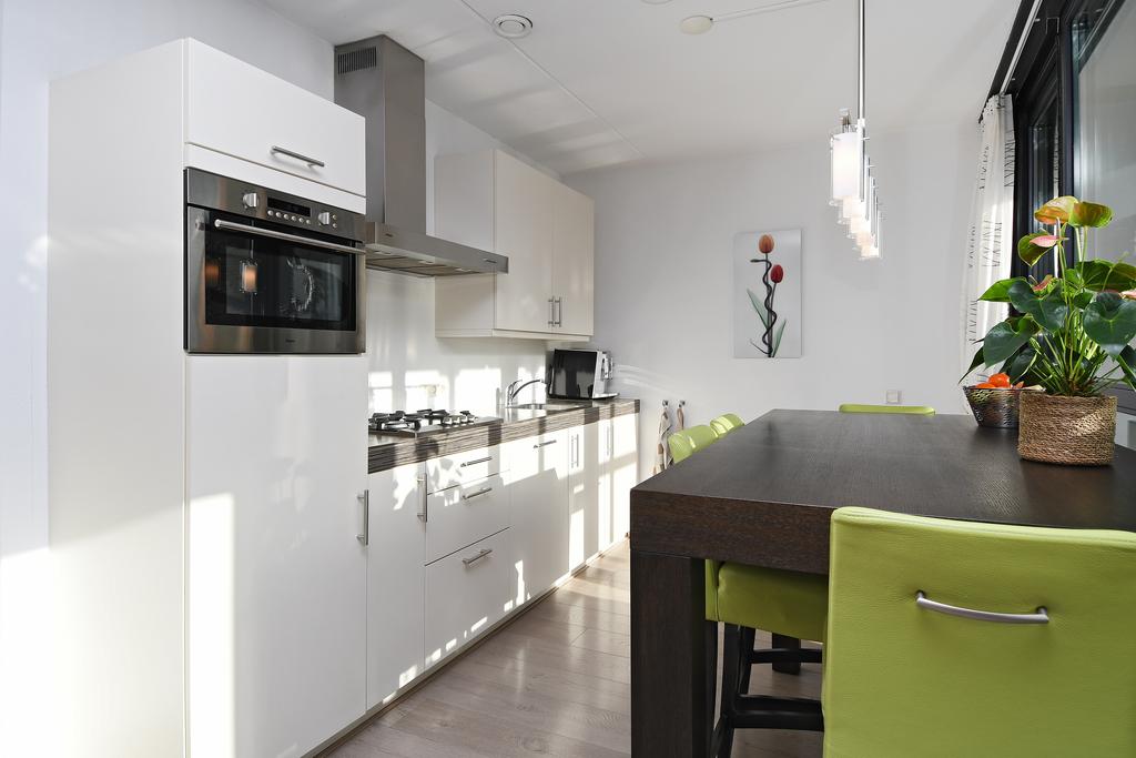 De keuken is goed en modern ingericht en is voorzien van een 4-pits-gaskookplaat, afzuigkap, koelkast, afwasmachine, combi-oven/magnetron (van 2021) en gootsteen. Er is prima ruimte om een eettafel te plaatsen en daarmee meteen fijn aan te sluiten op de loggia.