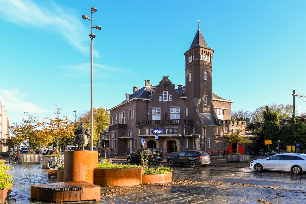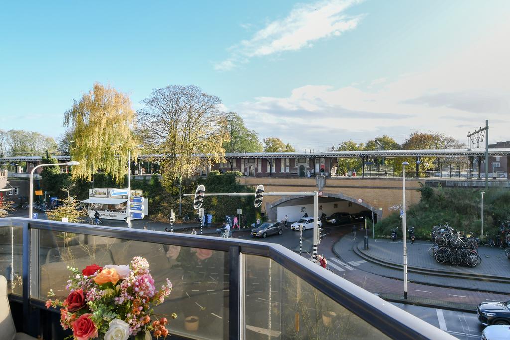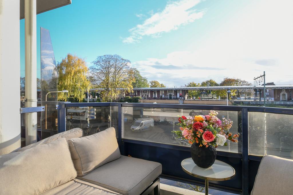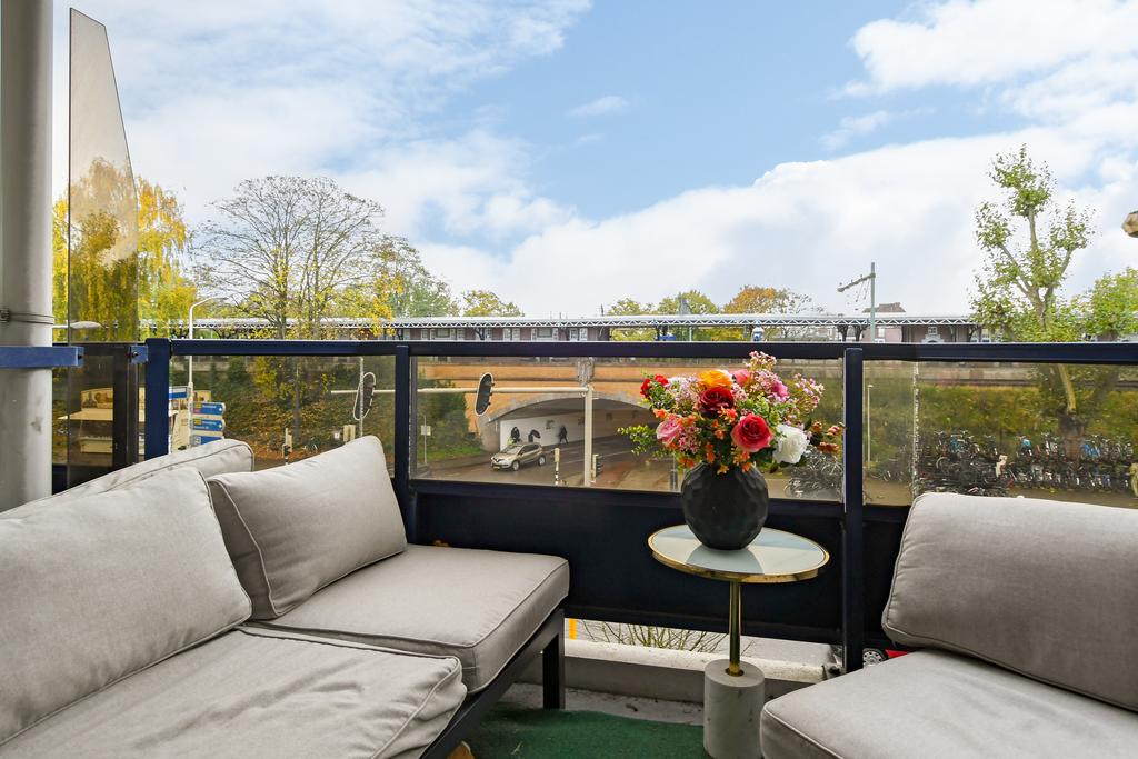 Vanuit de woonkamer is er toegang naar het fijne balkon waar je heerlijk kan genieten van de zon (op het zuiden georiënteerd) en de bewegingen rondom het station.
