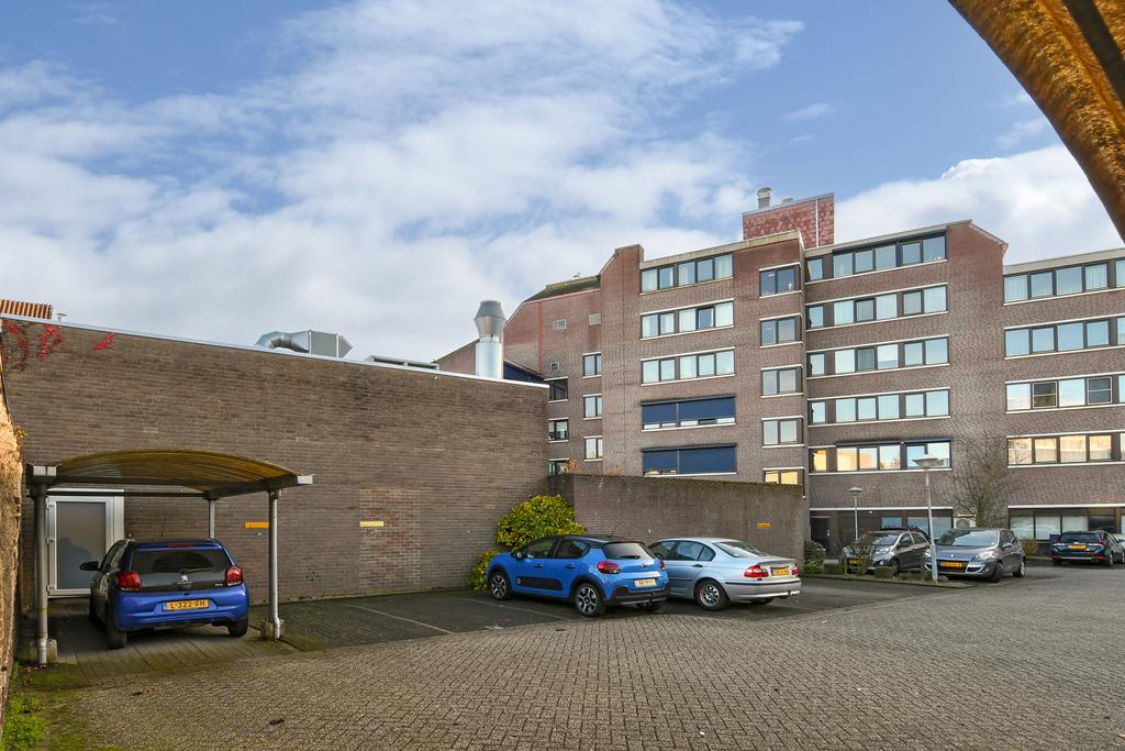 Op de afgesloten binnenplaats ligt de eigen parkeerplaats met carport welke bij dit appartement behoort.
