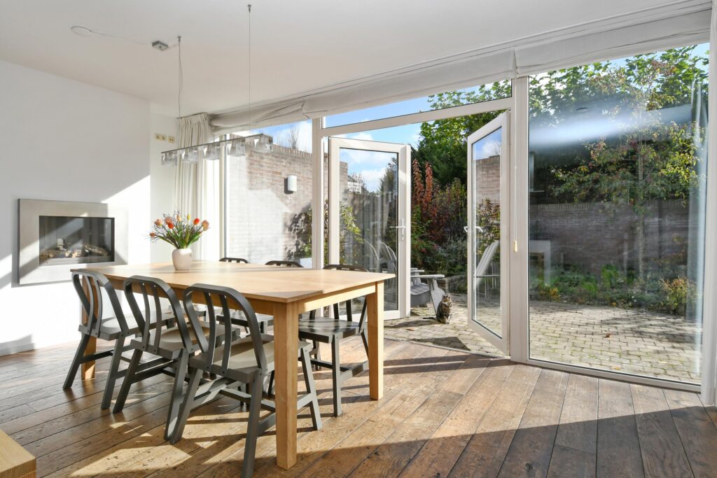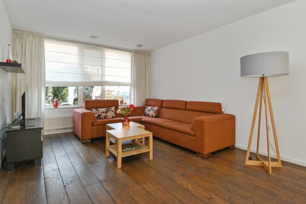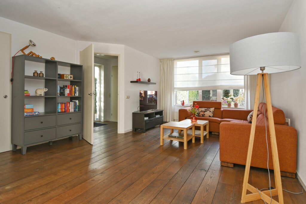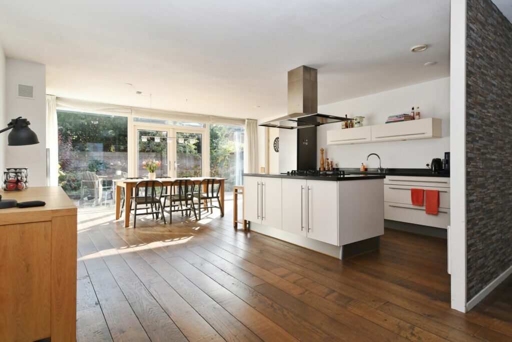 Bij binnenkomst valt direct de ruime woonkamer op, die dankzij de uitbouw nog meer leefruimte biedt. De openslaande tuindeuren zorgen voor een mooie verbinding tussen binnen en buiten en zorgt voor veel daglicht in de woning.