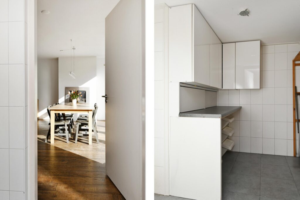 Vanuit de woonkeuken heb je inpandig toegang tot de voormalige garage. Deze is slim ingedeeld en biedt een bijkeuken aan de achterzijde met extra werkruimte en aansluitingen, plus een separate berging voor fietsen, tuinspullen en overige benodigdheden aan de voorzijde.