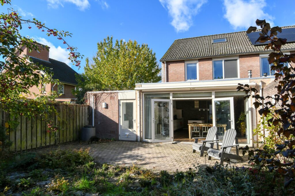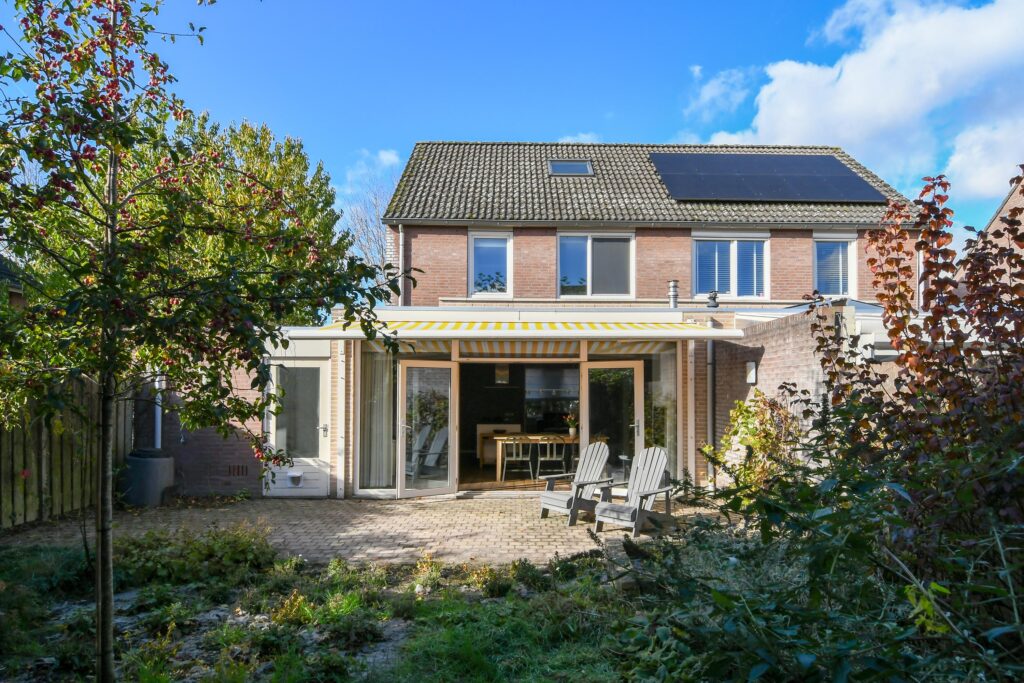 De achtertuin biedt veel privacy en is heerlijk zonnig gelegen. Er is een fijn terras voor lange zomeravonden en voor de warme dagen zijn er zowel aan de voor- als achterzijde zonneluifels (2023). Hier leef je buiten in alle rust.