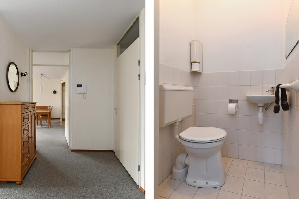 Gemeenschappelijke hal met lift- trappenhal, toegang naar de binnentuin en en entree naar het appartement.