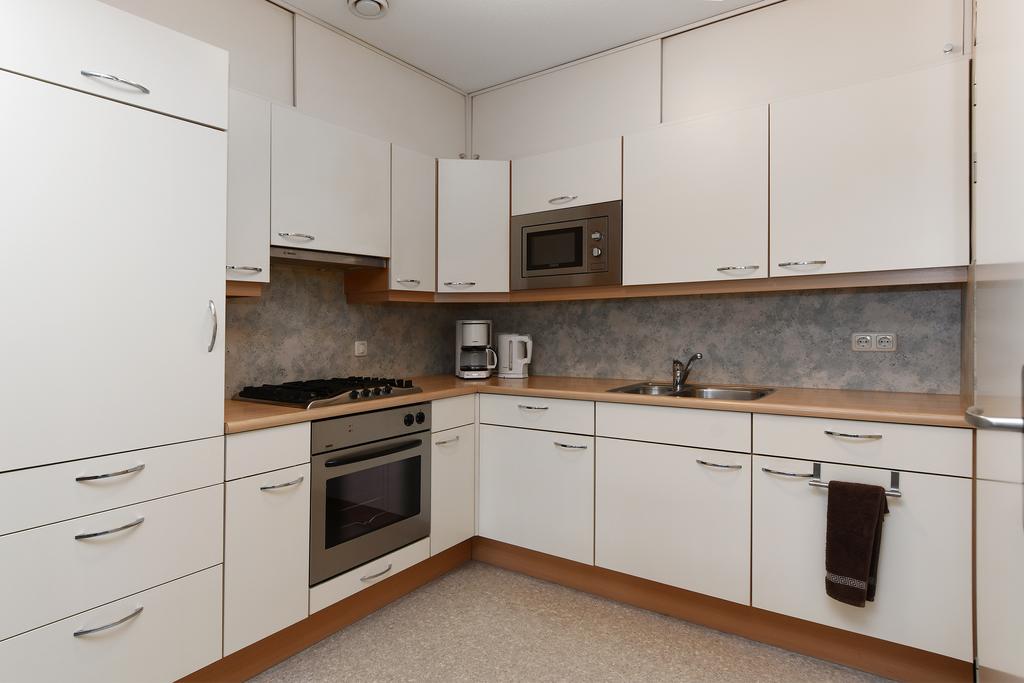 De keuken is goed ingericht en voorzien van een gaskookplaat, vlakscherm-afzuigkap, 1,5 spoelbak, oven, seperate magnetron en koelkast. In de aansluitende berging is veel extra bergruimte en zijn de witgoedaaansluitingen aangebracht. Ook zijn hier de combiketel en mechanische ventilatie geplaatst.