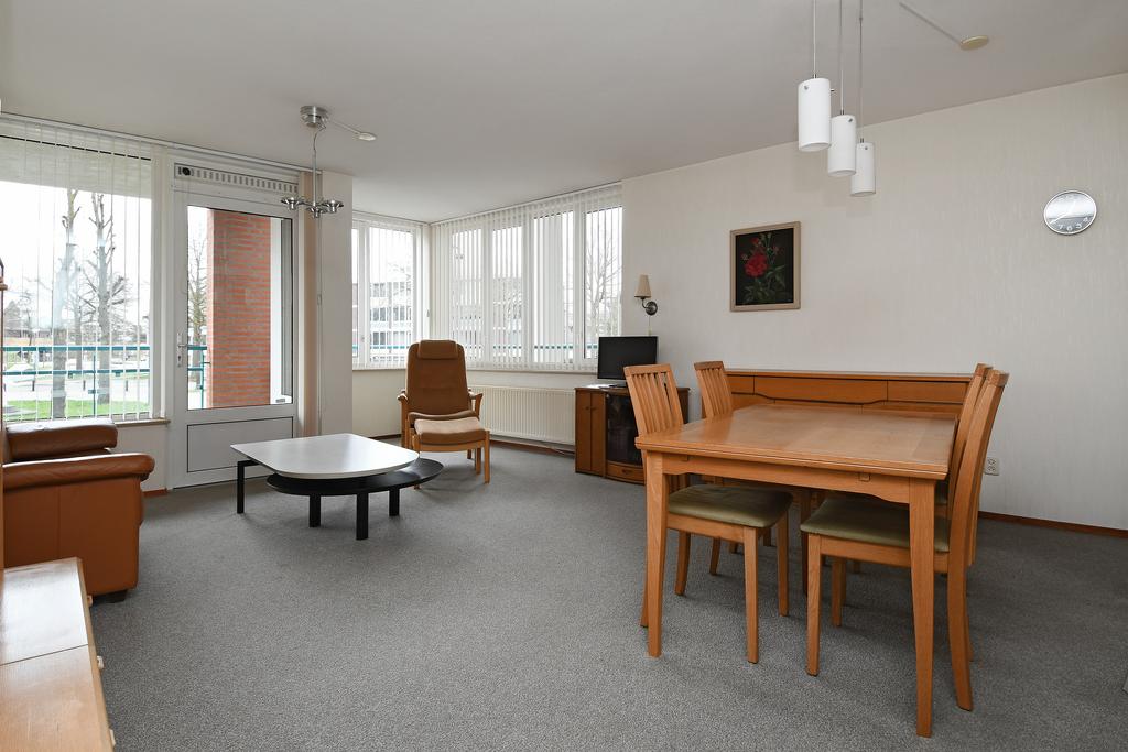 De woonkamer heeft een prima maatvoering en veel raamoppervlakte waardoor je zowel veel daglicht binnen krijgt en ook een fijn en breed zicht naar buiten hebt.