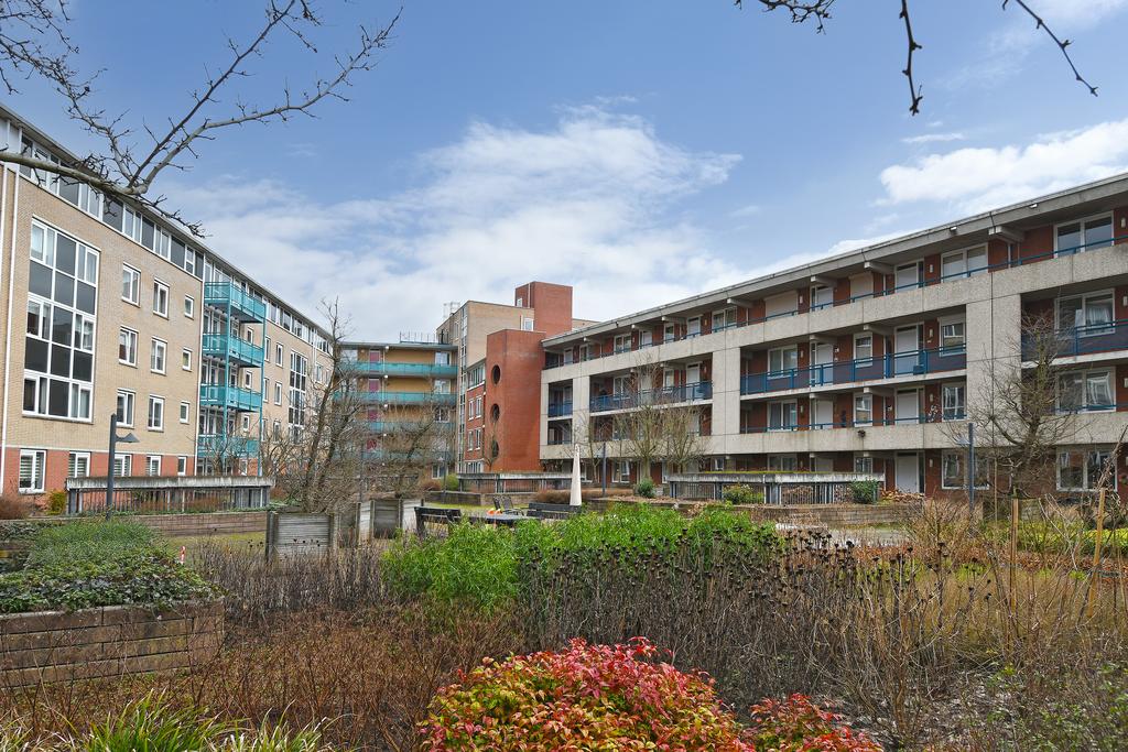 Het bijzondere aan dit appartementencomplex dat samen met andere complexen aan de Louis Regoutstraat en Blekersraat een driehoek vormt is de ruime en goed aangelegde gezamenlijke binnentuin. Deze binnentuin is aangelegd met paden, een plein, mooie borders, een picknick-tafel en speeltoestellen en zandbak.